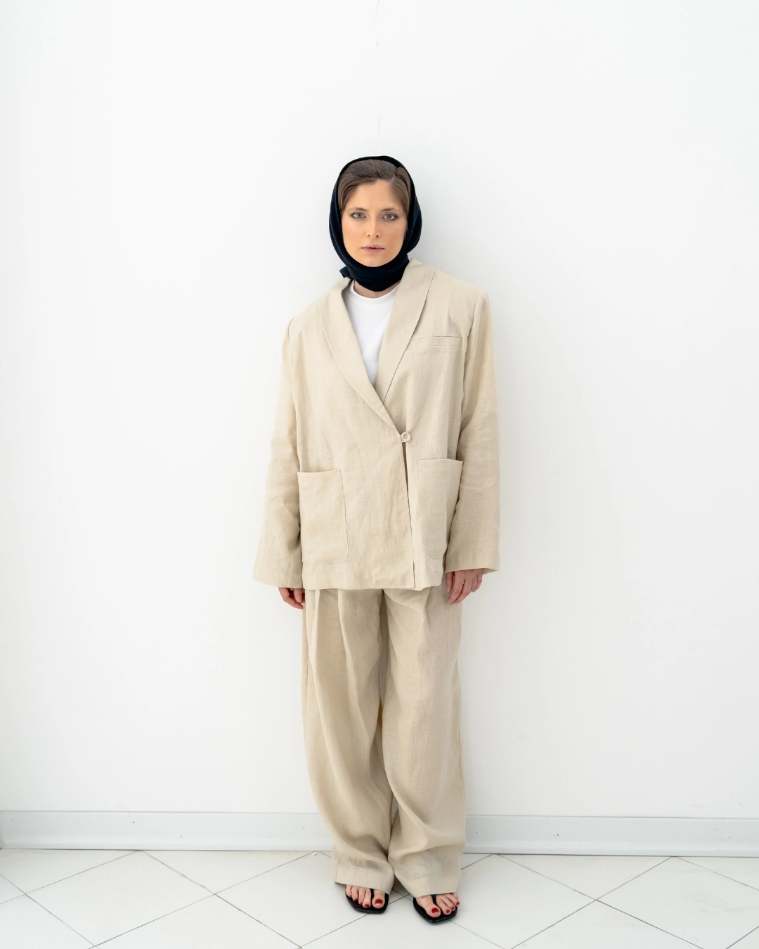 توضیحات : شلوار زنانه لینن ITLY با ساسون بلند در پشت، طراحی خاص و شیک با دوخت ظریف. سبک و خنک، مناسب فصل‌های بهار و تابستان. انتخابی ایده‌آل برای استایل‌های روزمره و رسمی-نیمه رسمی.