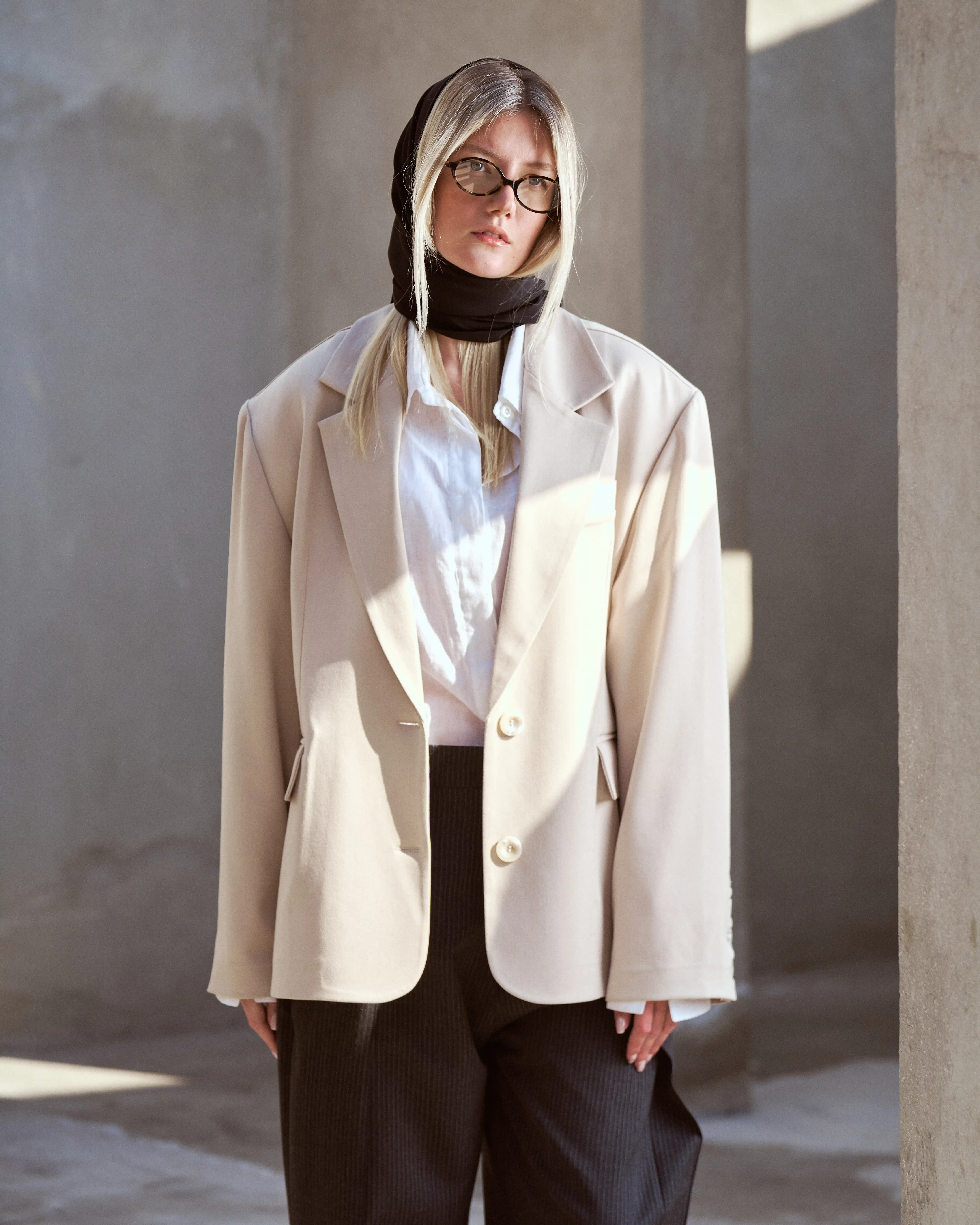 کت زنانه گاباردین با طراحی دو دکمه در قسمت جلو، شیک و مینیمال، مناسب استایل رسمی و نیمهرسمی در چهار فصل.