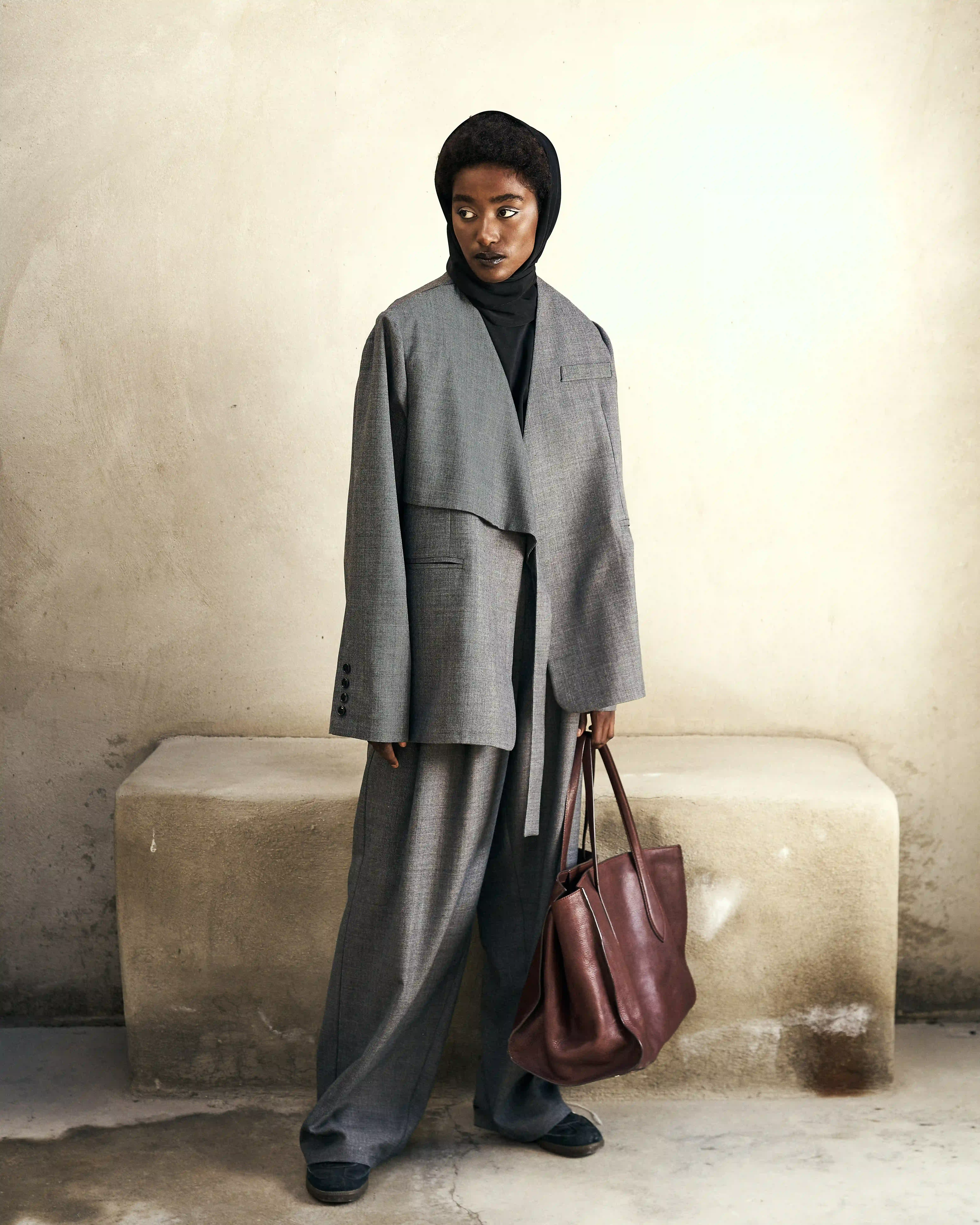 توضیحات : کت فاستونی زنانه با طراحی کمربند و سگک، شیک و رسمی، مناسب استایل روزمره و محیطهای کاری در فصل پاییز و زمستان.