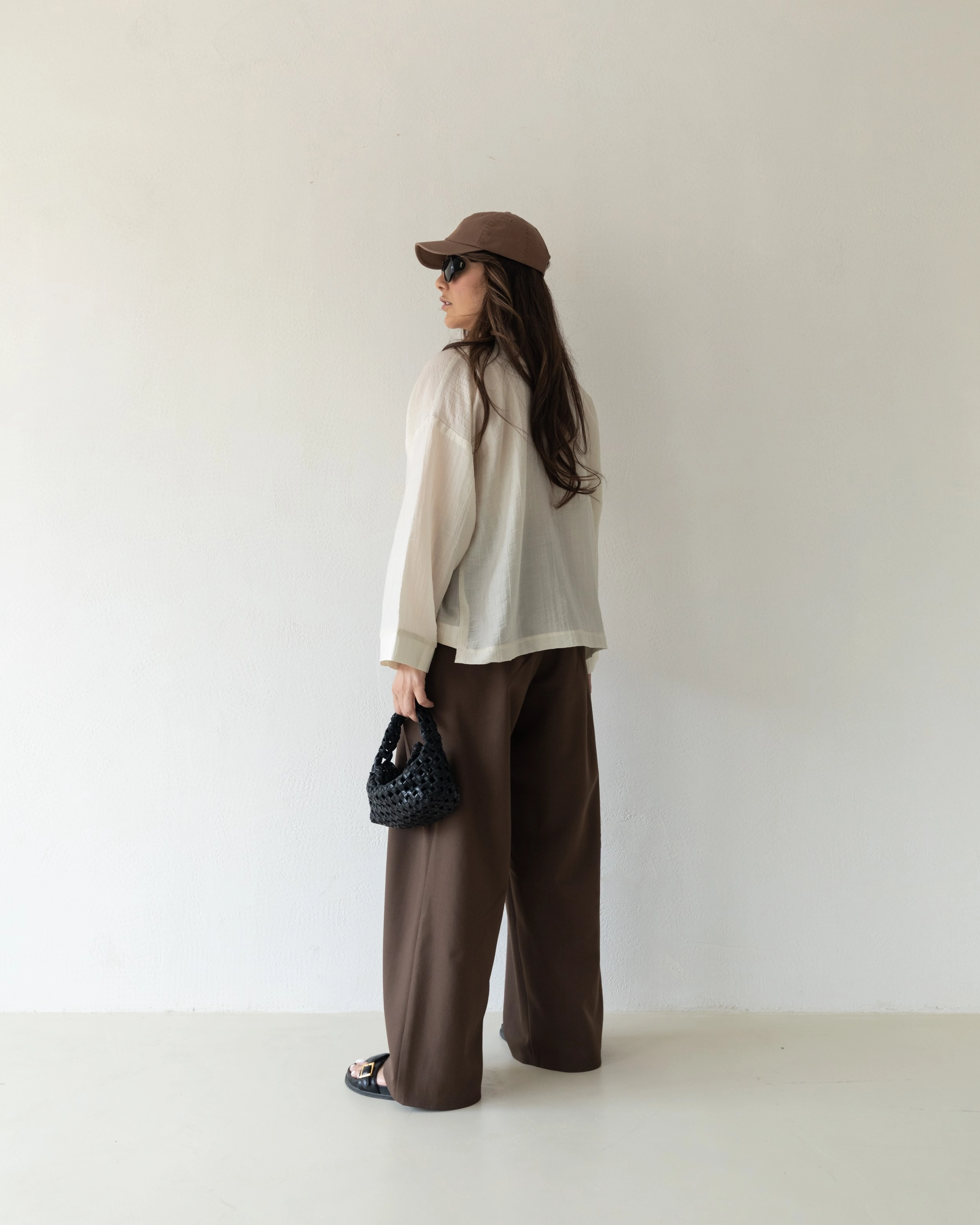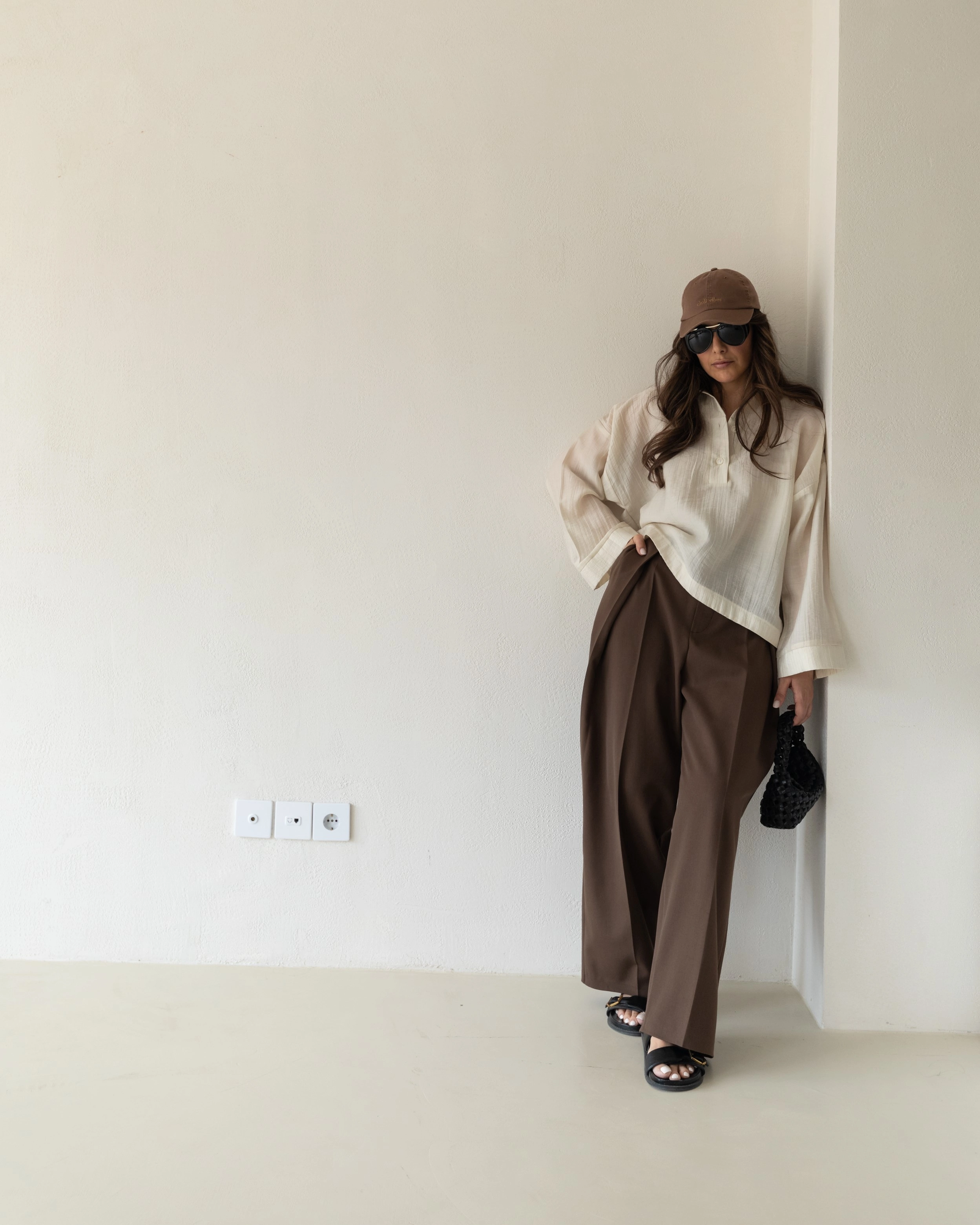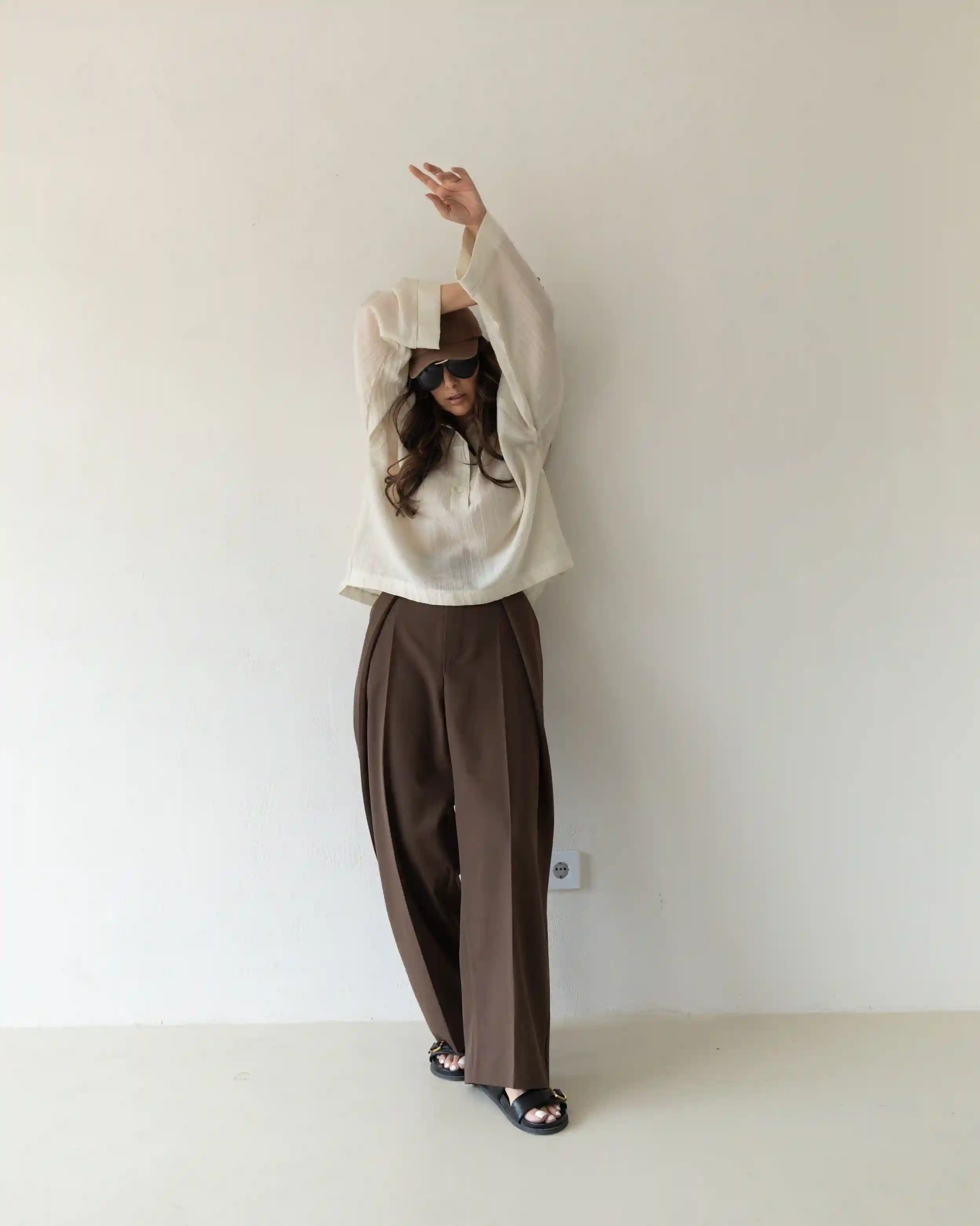 توضیحات : شلوار زنانه فاستونی با طراحی پیلیهای کج، سبک و راحت. مناسب استایل روزمره و نیمه رسمی، با ظاهری شیک و کاربردی برای محیط کار و استفاده روزمره در فصلهای بهار و تابستان.